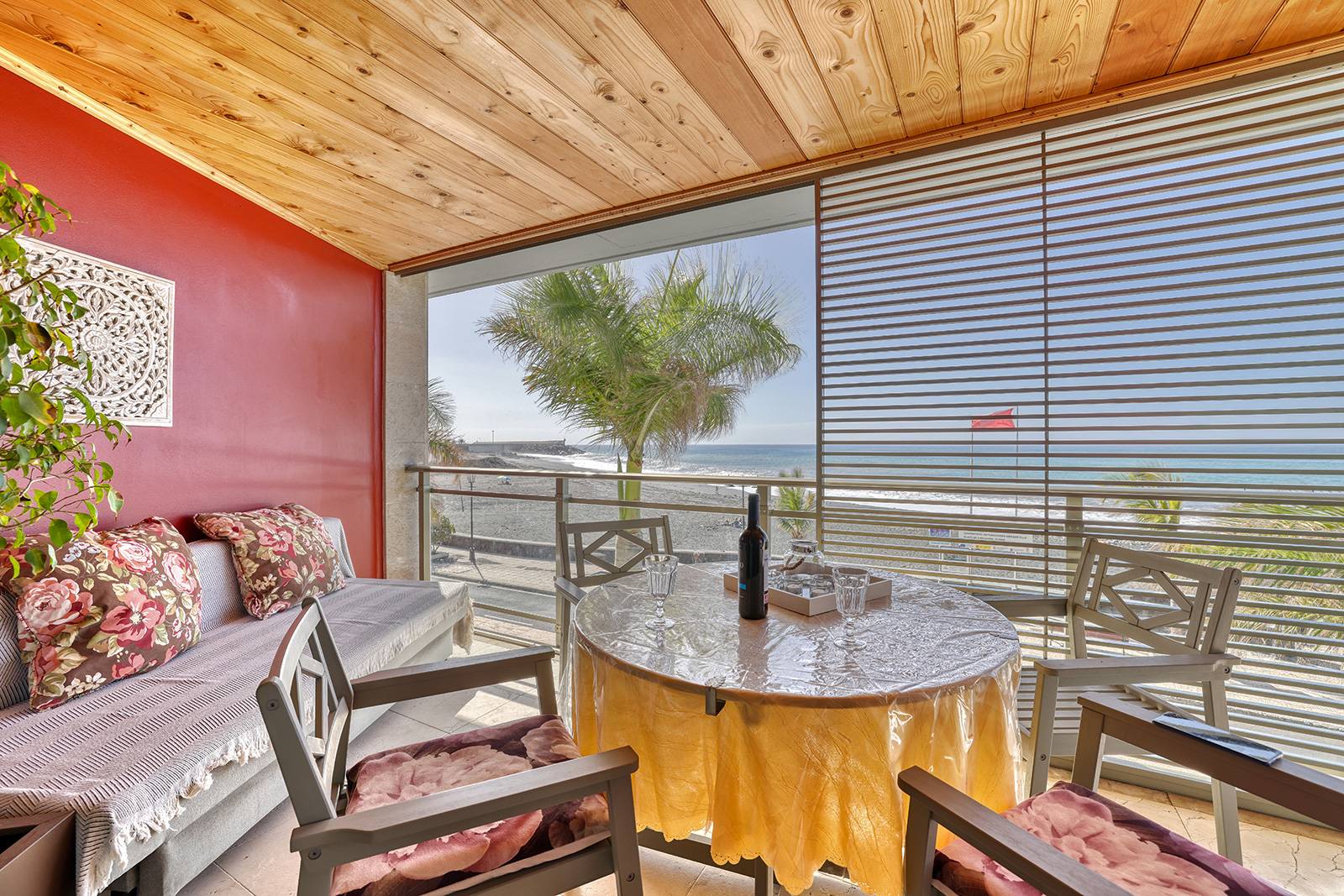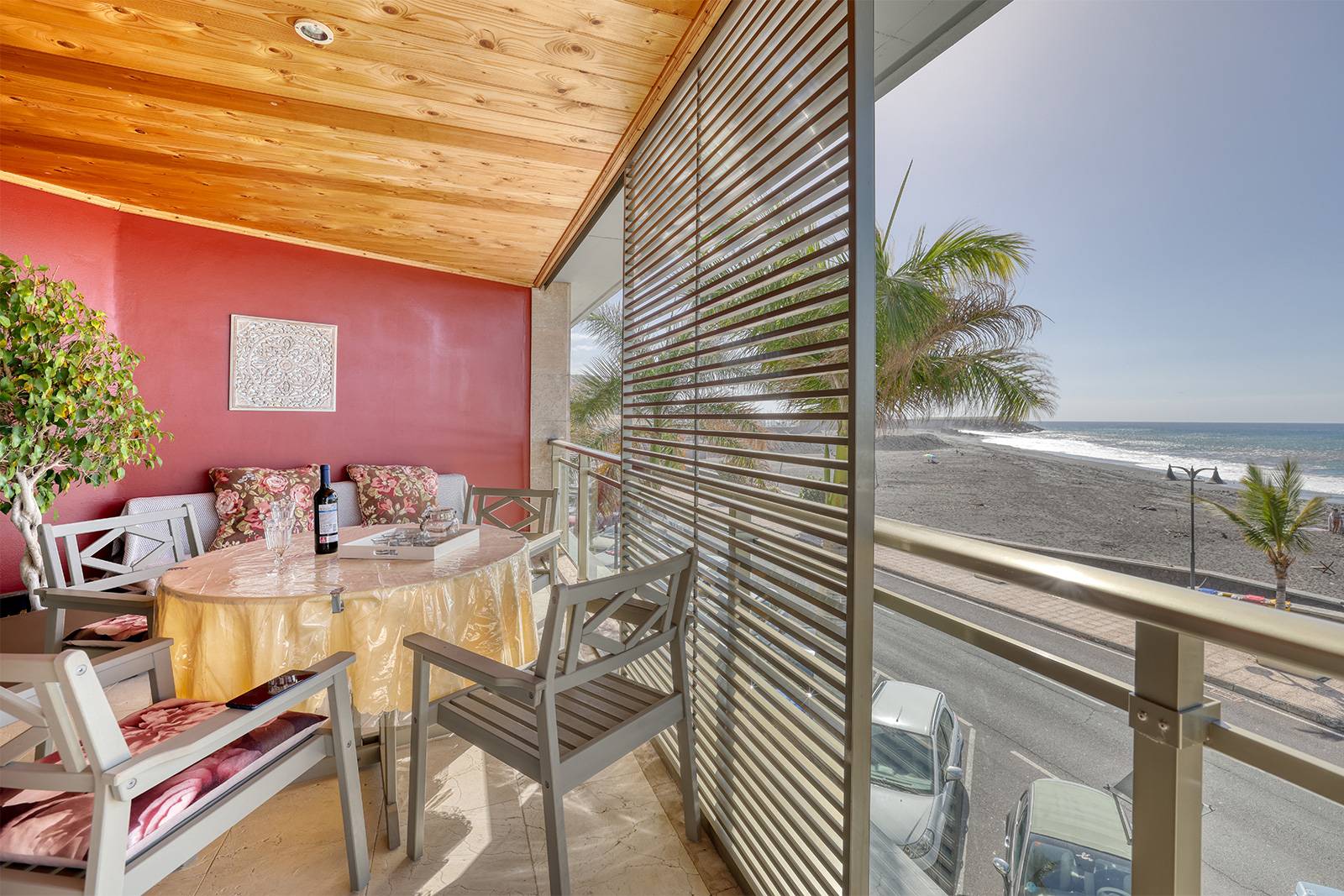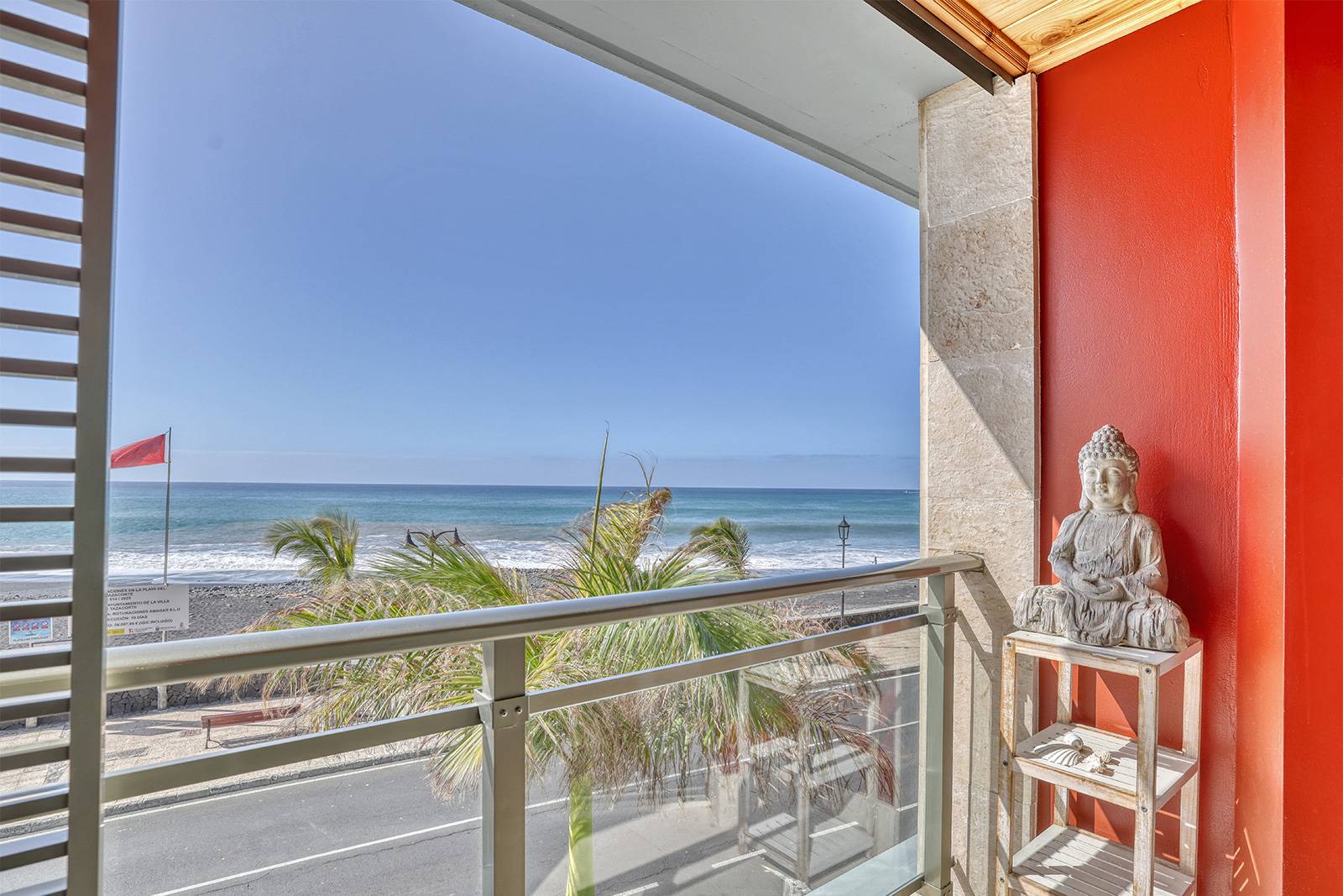 Der großzügige Balkon ist ein besonderer Platz dieser Unterkunft. Hier lässt sich morgens bei einer Tasse Kaffee der Tag beginnen oder am Abend die warme Atlantikluft genießen. Von hier aus reicht der Blick über den schwarzen Lavastrand von Puerto Tazacorte bis hinaus auf den Atlantik mit seinem ständig wechselnden Wellenspiel.