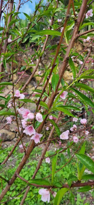 Auch die Pfirsichbäume sind Teil dieses winterlichen Mosaiks. Ihre zarten rosa Blüten zeigen sich bereits im Winter und kündigen den kommenden Frühling an, lange bevor er kalendarisch beginnt. Sie stehen in starkem Kontrast zu den satten Grüntönen der Umgebung und unterstreichen den besonderen Rhythmus der Inselnatur.