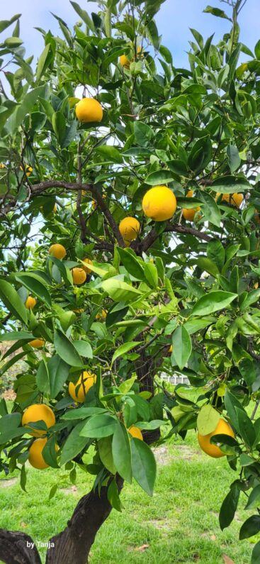 Hinzu kommen leuchtend gelbe Zitrusfrüchte, die derzeit vielerorts erntereif sind und das Grün der Bäume durchbrechen. Orangen prägen nicht nur das Landschaftsbild, sondern stehen zugleich für die landwirtschaftliche Tradition der Insel.