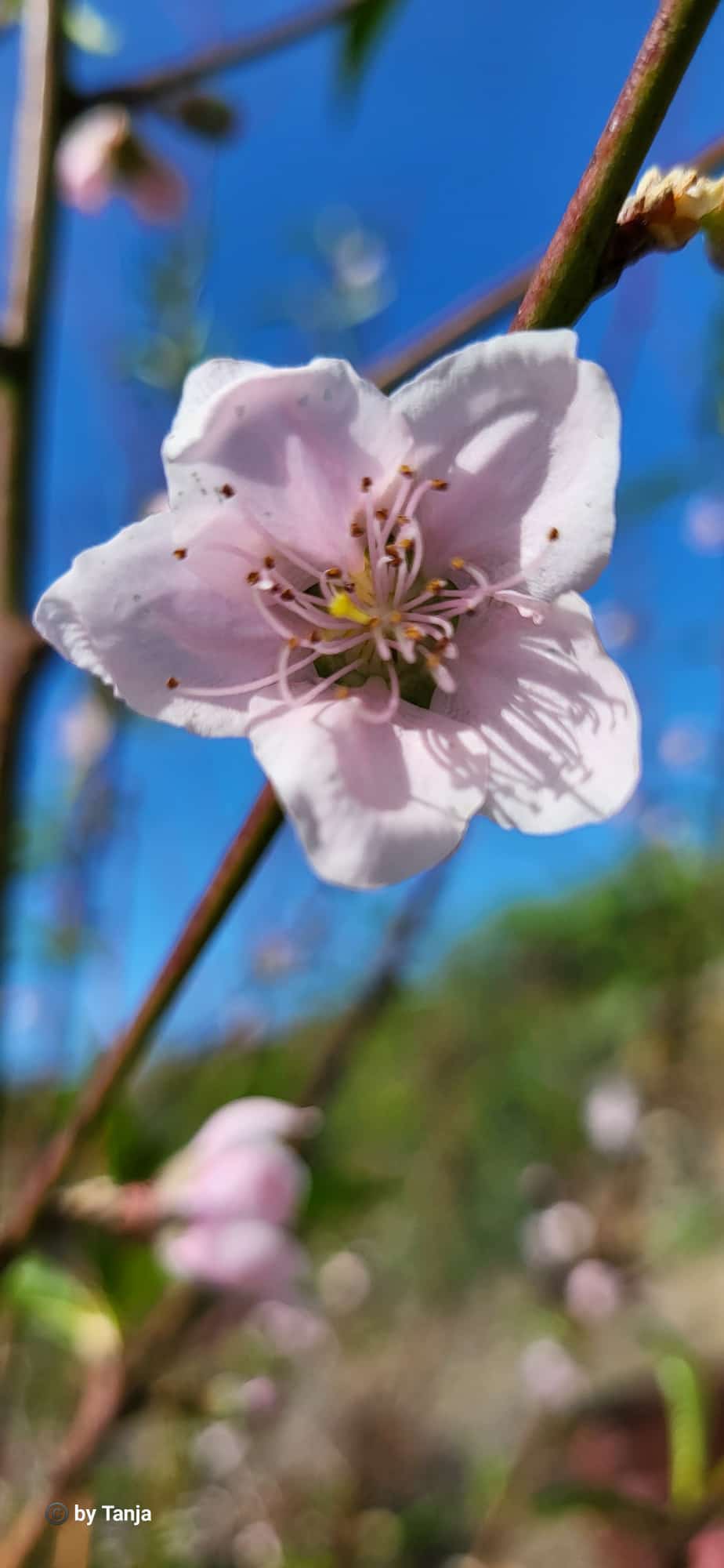 Auch die Pfirsichbäume sind Teil dieses winterlichen Mosaiks. Ihre zarten rosa Blüten zeigen sich bereits im Winter und kündigen den kommenden Frühling an, lange bevor er kalendarisch beginnt. Sie stehen in starkem Kontrast zu den satten Grüntönen der Umgebung und unterstreichen den besonderen Rhythmus der Inselnatur.