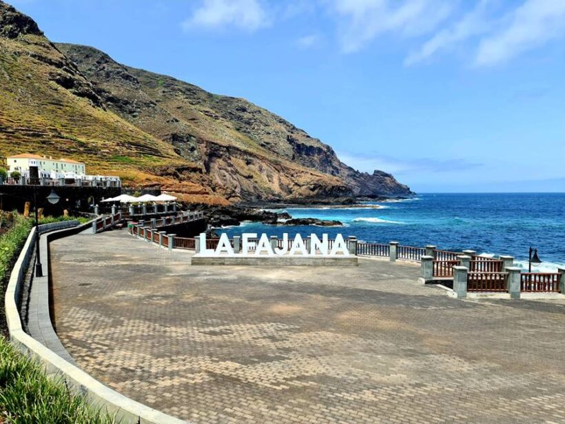 Darüber hinaus wurde ein Plakat mit großen Buchstaben mit dem Namen "La Fajana" angebracht, auf dem das Profil der Küste der Gemeinde und La Punta de la Gaviota zu sehen ist, eine Enklave, in der man die Sonnenuntergänge im Norden von La Palma genießen kann.