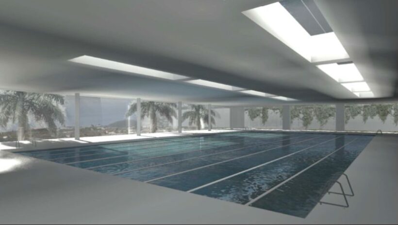Im zweiten Obergeschoss entsteht das 25 x 13 m große Hallenbad, das auch über einen Wellnessbereich, Nassumkleiden, Rezeption und Cafeteria verfügt, während im unteren Bereich ein städtisches Fitnessstudio mit Mehrzweckräumen für verschiedene Sportarten entsteht, mit Umkleidekabinen, die den Fitnessbereich und die Mehrzweckräume des Pavillons ergänzen und es ermöglichen, dass Menschen jeden Alters Freude haben: Kinder, Jugendliche, Erwachsene und ältere Menschen “.
