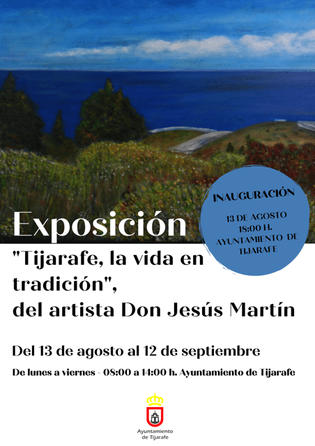Noch bis zum 12. September findet im Ayuntamiento Tijarafe die Ausstellung "Tijarafe, la vida en tradición" des Künstlers Jesús Martín statt. Die Werke können von Montag bis Freitag in der Zeit von 08:00 bis 14:00 Uhr besichtigt werden.