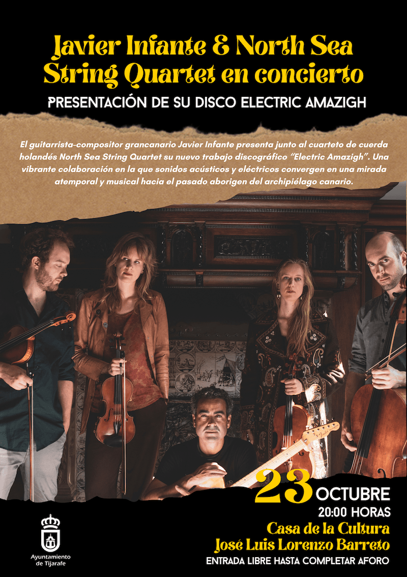 Am 23. Oktober findet in der Casa de la Cultura José Luis Lorenzo Barreto in Tijarafe eine "elektrisierende" Streicherbegegnung mit "Electric Amazigh" statt, dem neuen Album des niederländischen Jazz-Streichquartetts North Sea String Quartet und des Gitarristen und Komponisten Javier Infante aus Gran Canaria.