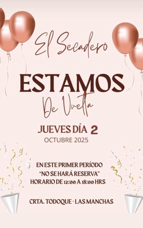 Gute Nachrichten für die Gastronomie im Aridanetal: Das beliebte Restaurant El Secadero in Las Manchas feiert am Donnerstag, den 2. Oktober 2025, seine Wiedereröffnung.