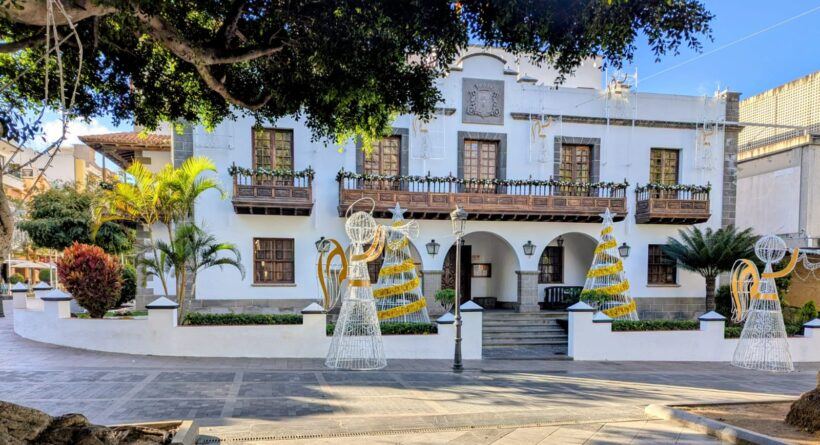 Weihnachtlich dekoriertes Stadtbild in Los Llanos de Aridane – stimmungsvolle Kulisse für den Weihnachtsmarkt.