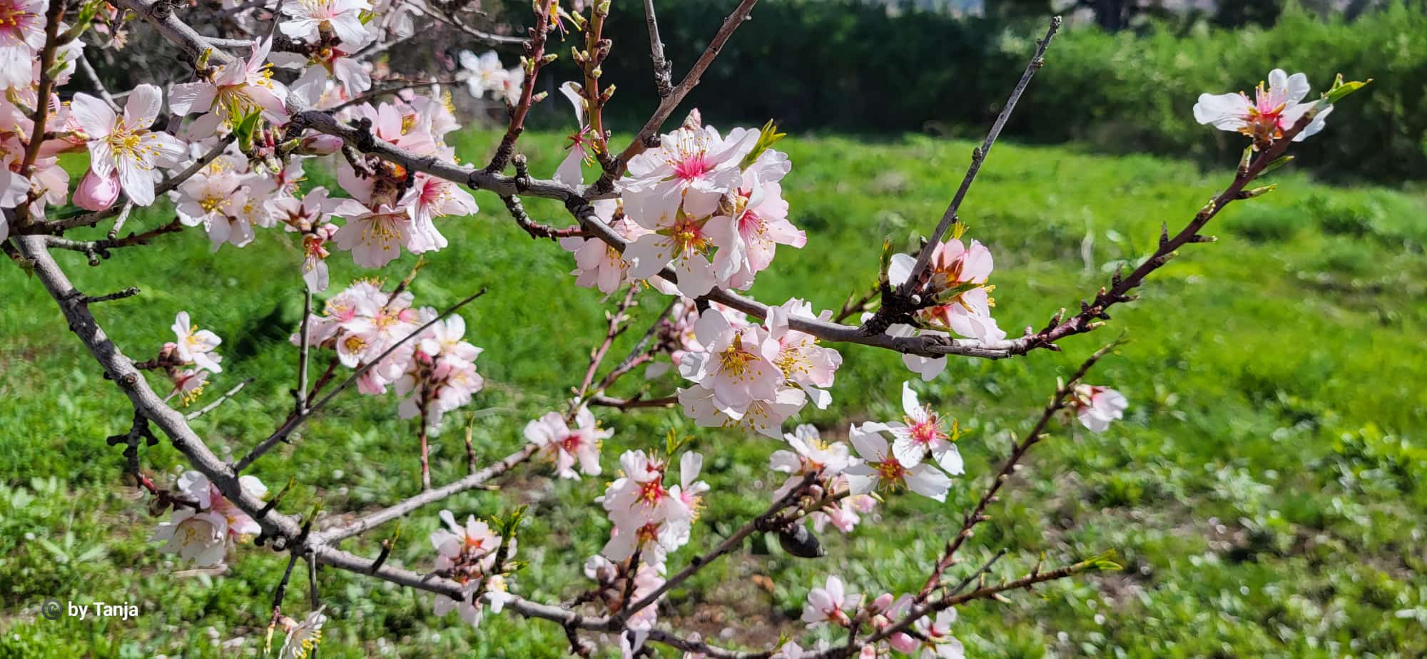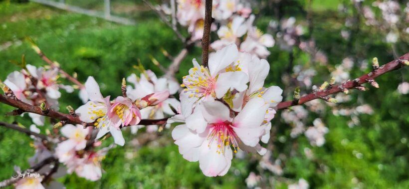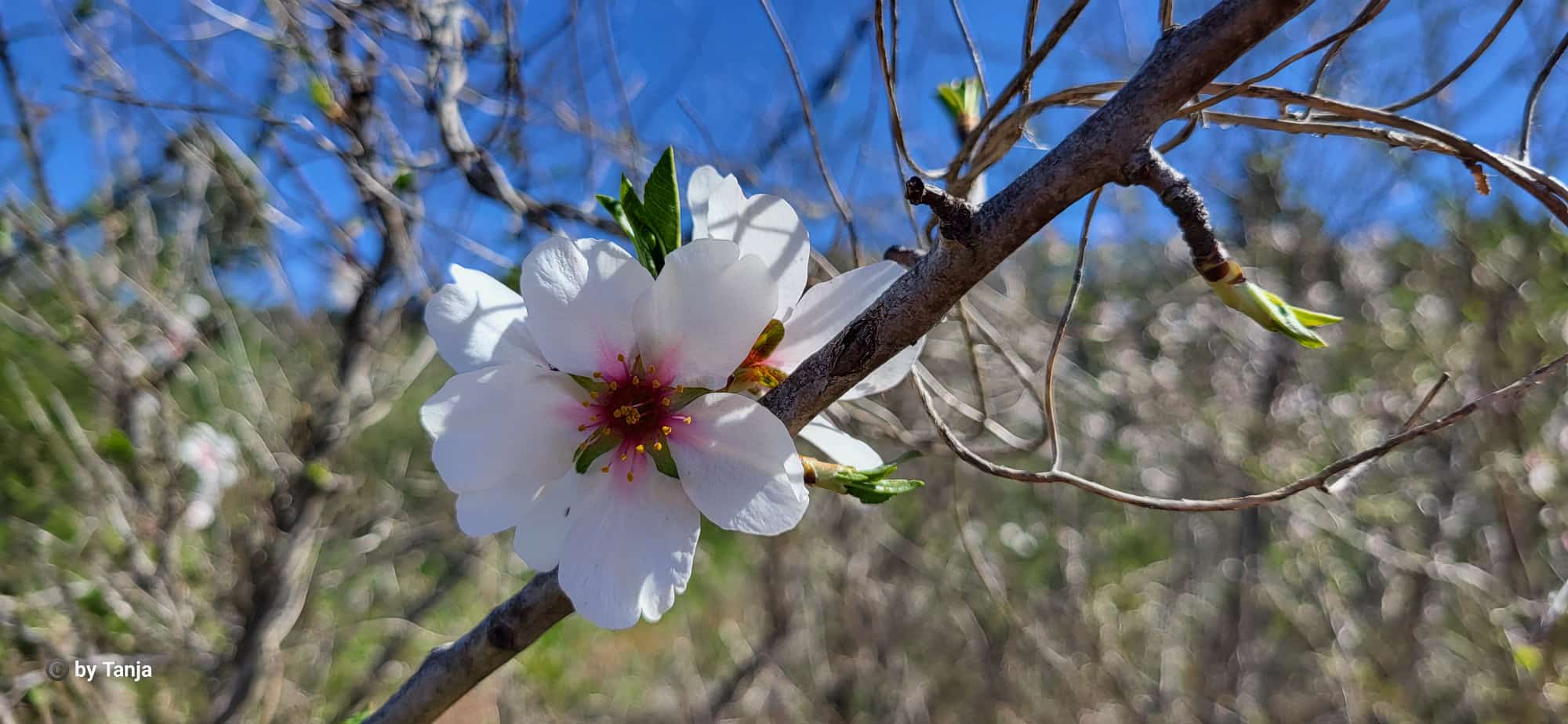 Für einige Wochen verändert sich der Blick auf vertraute Orte – nicht abrupt, sondern leise und Schritt für Schritt. Die Aufnahmen zeigen diese Zeit in ihrer ganzen Vielfalt: feine Details an den Zweigen, alte, knorrige Bäume mit neuem Austrieb und weitläufige Flächen, in denen die Mandelbäume das Bild bestimmen.