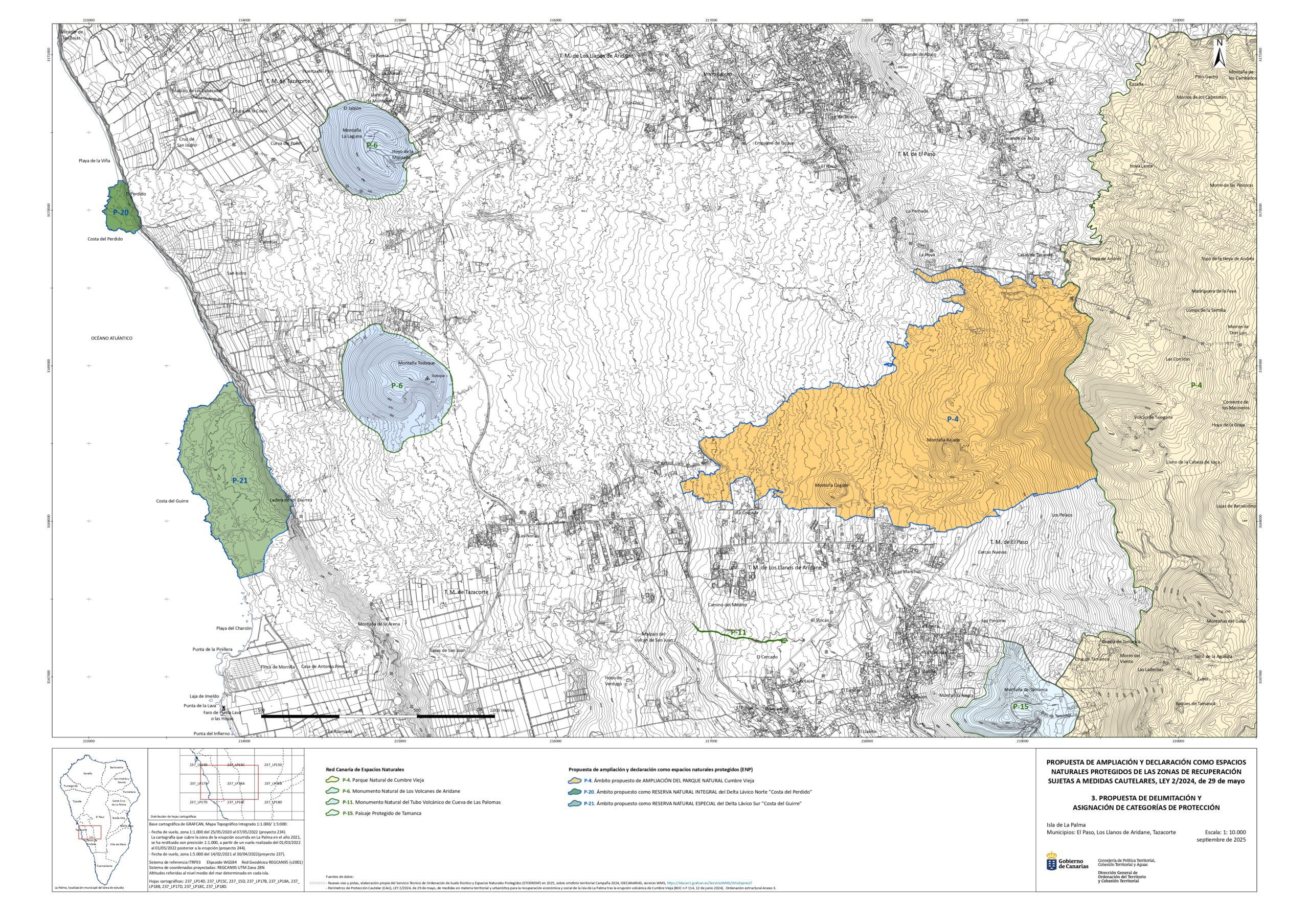Nach Angaben von Inselpräsident Sergio Rodríguez wurden die ursprünglichen Grenzen überarbeitet, um die wichtigsten geologischen Strukturen zu schützen, gleichzeitig aber den Wiederaufbau in betroffenen Gebieten nicht zu behindern. So wurden unter anderem einige Häuser oberhalb des Friedhofs von Las Manchas aus dem Schutzbereich herausgenommen.