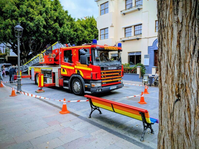 Feuerwehrfahrzeug im Zentrum von Los Llanos – Teil der Notfallstruktur auf La Palma.
