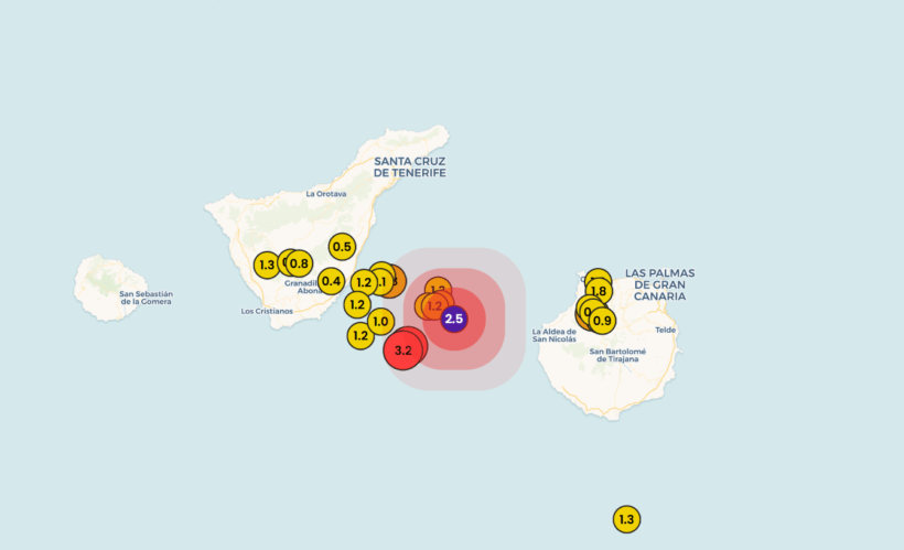 Nach Angaben des IGN wurden seit Mitte Oktober mehr als 30 Erdstöße gemessen. Die stärksten Beben erreichten eine Magnitude von 3,2, mit Epizentren im Meer und in Tiefen zwischen 25 und 30 Kilometern. Auf den Inseln selbst waren die Erschütterungen kaum oder gar nicht zu spüren.