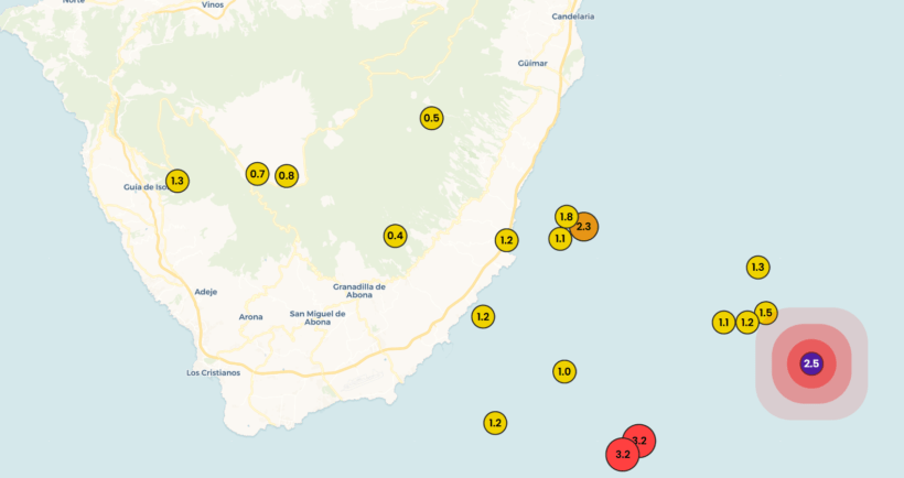 In den vergangenen Tagen hat das spanische Instituto Geográfico Nacional (IGN) eine Serie leichter Erdbeben zwischen den Inseln Teneriffa und Gran Canaria registriert. Die Aktivität konzentriert sich vor allem auf den Bereich südöstlich von Teneriffa, vor der Küste von Fasnia, Arico und Güímar.