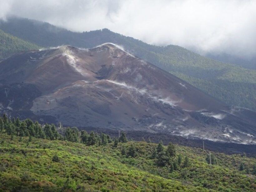 Der Vulkan Tajogaite Ende März 2026 – auch Jahre nach dem Ausbruch ist die Landschaft weiterhin stark verändert.