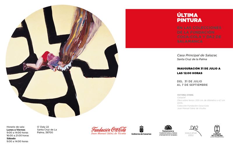 Coca-Cola stellt aus. Just eröffnet und noch bis zum 7. September 2013 im Casa Salazar in Santa Cruz de La Palma zu sehen: Die Ausstellung „Última Pintura en las Colecciones del DA2 y la fundación Coca-Cola Juan Manuel Sáinz de Vicuña”. Unter diesem nicht gerade kurzem Titel präsentieren zeitgenössische Künstler der Coca-Cola-Kunststifung ihre Werke, die in den Jahren 2003 bis 2011 entstanden sind. Die Techniken reichen von Malerei über Siebdruck bis hin zu Fotografie und Videokreationen. Von La Palma 24