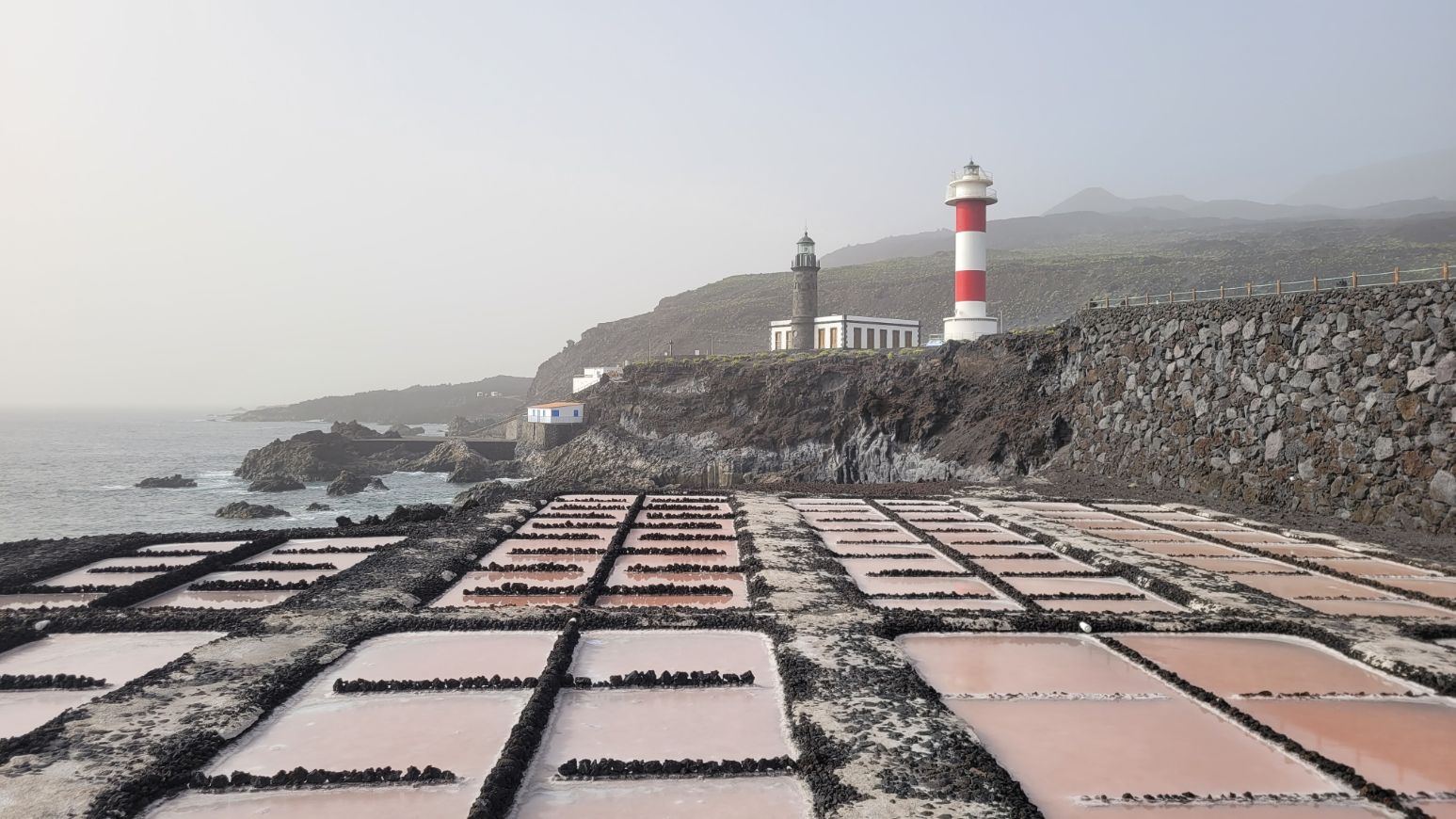 Im Süden rund um Fuencaliente veränderte sich das Erscheinungsbild deutlich. An den Salinen wirkten die Wasserflächen stumpfer, die Farbtöne insgesamt reduziert. Der Leuchtturm hob sich nur noch weich vom trüben Himmel ab, Meer und Horizont waren kaum klar voneinander zu trennen.