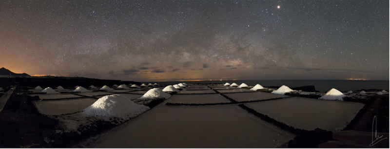 Die Salinen im Süden von La Palma: Montserrat Alejandre weiß, dass das weiße Gold Tag und Nacht ein tolles Motiv ist. Mehr Infos über die Fotografin. Wer von der Saline neben den Leuchttürmen auf die Höhen im Süden von La Palma steigt, dem bietet sich dieser glühende Ausblick auf die anderen Inseln. Foto: Gemeinde Fuencaliente