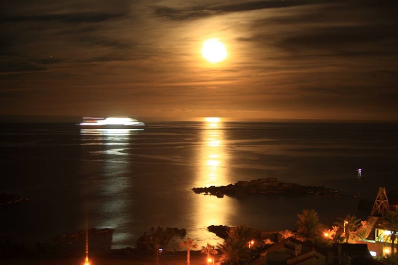 Der Osten der Isla Bonita bei Nacht: fotografiert von Fernando Rodríguez mit Blick auf den Hafen der Hauptstadt Santa Cruz.Wer auf dieses Bild klickt, kann lesen, was die Fotografin Montserrat Alejandre draufgeschrieben hat: Action bei Nacht am Strand von Charco Verde im Westen von La Palma.