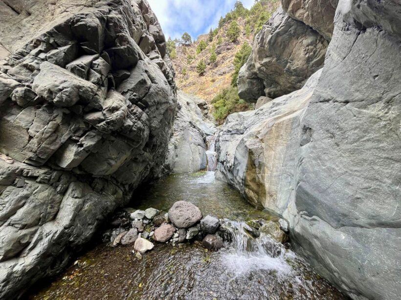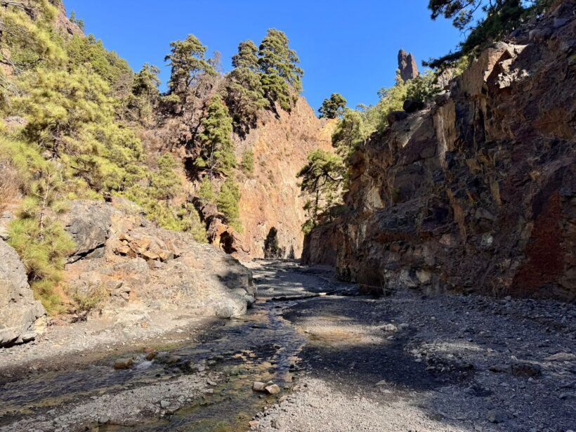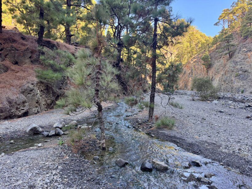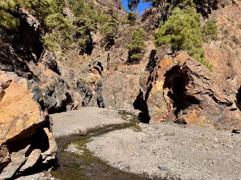 Nach rund zwei Stunden erreichten wir Dos Aguas, die Stelle, an der sich die beiden Hauptwasserläufe der Caldera vereinigen und der Barranco de las Angustias beginnt.