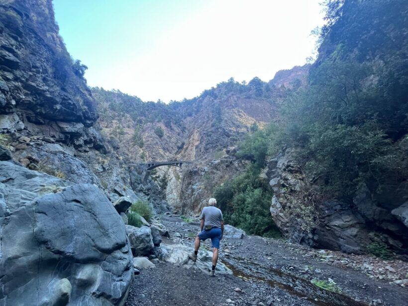 Ausgangspunkt war der Parkplatz am Eingang des Parks. Von hier führt der Weg zunächst entlang des Bachlaufs, teils über Baumstämme oder flache Wasserstellen – gutes Schuhwerk und Trittsicherheit sind also unerlässlich. Immer wieder wechseln sich schmale Steigpassagen mit kleinen Flussüberquerungen und trockenen Abschnitten im Flussbett ab.