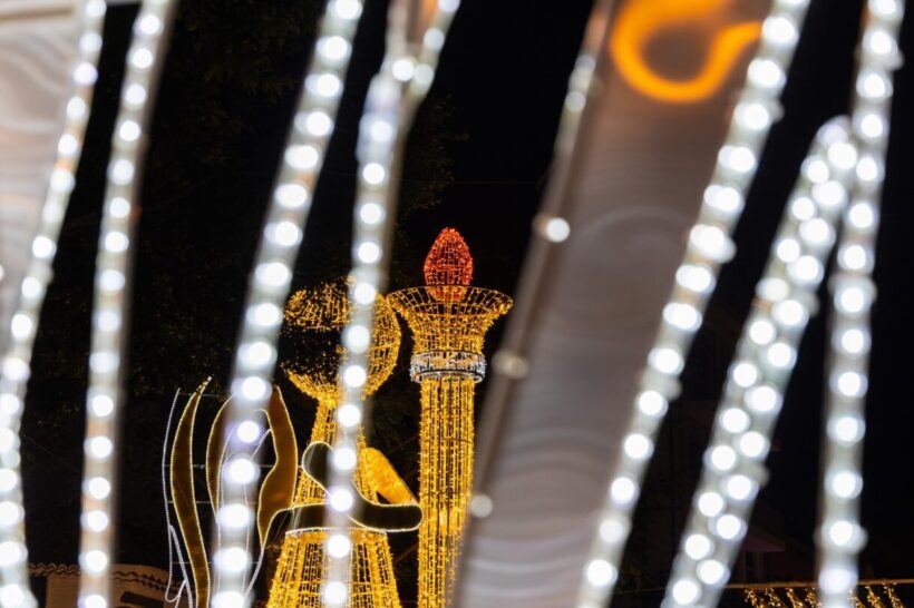 Sie setzt Akzente, ohne aufdringlich zu wirken, und begleitet Einheimische wie Besucher durch die Abendstunden. Im Zentrum prägen festliche Installationen das Bild: beleuchtete Engelreihen, Glockenmotive, Sterne und Lichterketten, die sich über Gassen spannen.