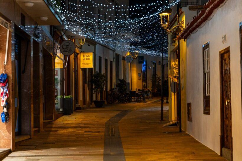 Die Stadt lädt zum ruhigen Spaziergang ein – vorbei an Geschäften, Cafés und kleinen Plätzen, die in warmem Licht erscheinen. Los Llanos zeigt sich in diesem Jahr deutlich festlicher geschmückt als in den vergangenen Jahren, bleibt dabei aber angenehm entspannt.
