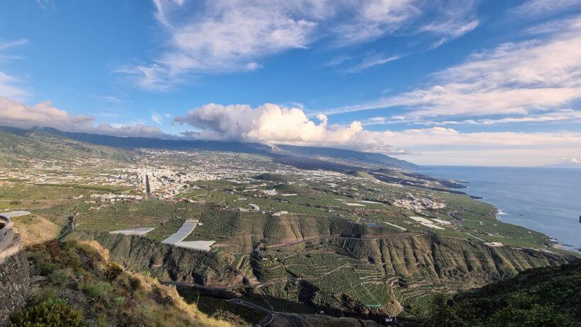 Wer die kurvige, steile Straße in Richtung El Time hinauffährt, hält oft noch einmal am Aussichtspunkt an. Der Blick fällt zurück über Los Llanos de Aridane, folgt den Terrassen hinab zum Puerto de Tazacorte und verliert sich schließlich im offenen Blau des Meeres.